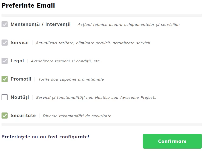 Dieser Nachteil war auf die Starrheit der verwendeten Anwendung bei der Entwicklung der Plattform zurückzuführen, doch mit der Neugestaltung von Hostico von Grund auf haben wir nun die notwendige Flexibilität, um Ihnen ein komplexes Newsletter-Benachrichtigungssystem anzubieten.