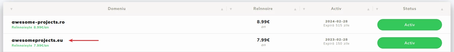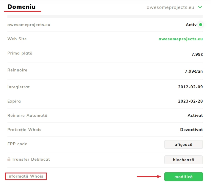 - Auf der angezeigten Seite wählen wir die Domain aus, für die die Eigentümerinformationen aktualisiert werden müssen.
