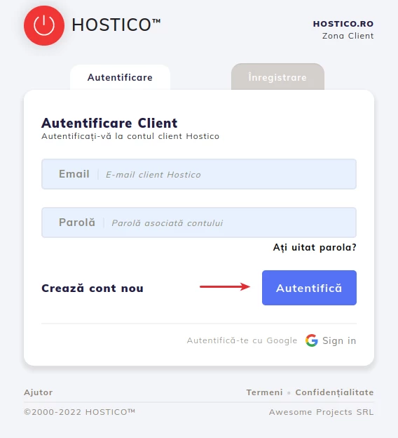 Authentifizierung (Anmeldung) im Hostico-Kundenkonto.