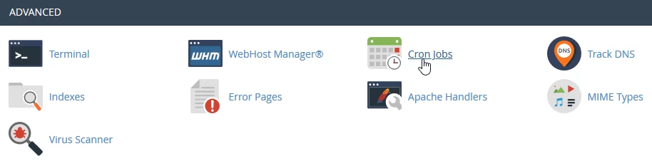 - Nachdem Sie sich im cPanel-Administrationspanel angemeldet haben, suchen Sie im angezeigten Fenster den Bereich Erweitert und wählen Sie von dort Cron-Jobs aus