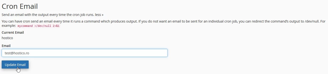 - Auf der nächsten Seite können Sie die E-Mail-Adresse festlegen, an die die Ergebnisse des Cron-Jobs gesendet werden sollen, falls gewünscht, danach drücken Sie die E-Mail aktualisieren-Schaltfläche