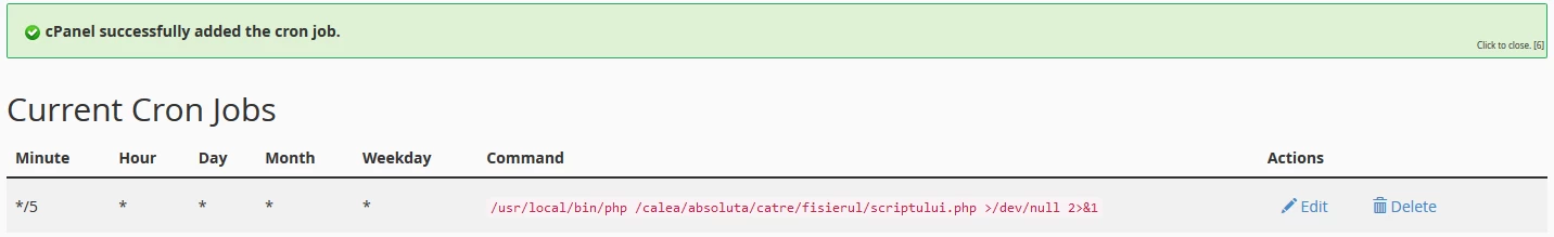 - Anschließend wird eine Bestätigungsnachricht angezeigt, und der Cron wird am Ende der Seite sichtbar sein, wo er bearbeitet werden kann.